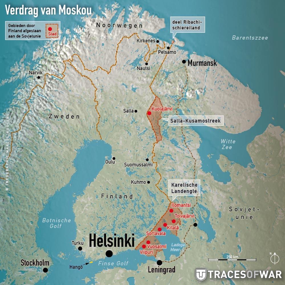 Het vredesverdrag van MoskouDe regering in Helsinki was woedend over deze scherpe politiek van de Sovjets, maar op 9 maart werd er een rapport ontvangen over de militaire situatie en daar stond in dat een ineenstorting van de Finse verdediging in de nabije toekomst verwacht kon worden. Op die grond dwong Mannerheim sterk aan op vrede en de regering verzocht haar afgevaardigden de Sovjetvoorwaarden te aanvaarden. Op 11 maart ondernamen de geallieerden een laatste poging om te voorkomen dat Finland vrede zou sluiten. Ze boden de Finse regering aan te hulp te komen, maar de Finnen hielden zich aan hun besluit om aan de eisen van de Sovjet-Unie toe te geven. Op 12 maart stuurde de Finse regering de afvaardiging een officiële volmacht om de vredesvoorwaarden te ondertekenen. Op het allerlaatste moment kwam de Britse ambassadeur melden dat de geallieerden de Noorse en Zweedse oppositie wel zouden weten over te halen, maar hij kwam te laat. Het verdrag werd die avond in Moskou getekend en de vijandelijkheden eindigden op 13 maart om 11.00 uur.