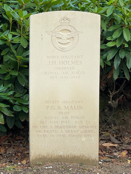 Sergeant Holmes was de waarnemer van de Vickers Wellington DV715 GT-V, die op 30 mei 1944 om 23:55 uur was opgestegen vanaf RAF Alconbury. Het vliegtuig, een van de Pathfinders werd na een aanval op Keulen in Duitsland, op de terugweg neergeschoten door een Duitse nachtjager. De Wellington stortte brandend neer bij Linde (Vorden) waarbij de gehele vijfkoppige bemanning omkwam. Sergeant Holmes en de rest van de bemanning liggen begraven op de algemene begraafplaats van Vorden.