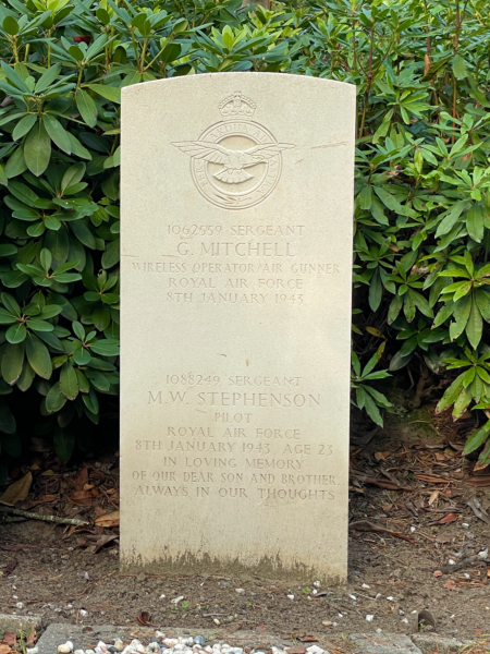Sergeant. No. 9 Squadron RAF, boordschutter/radio telegrafist. Zoon van George Mitchell en Elizabeth Michell (née Patterson) uit Fulwell Co. Durham. Echtgenoot van Ellen Mitchell (née Rutter).
