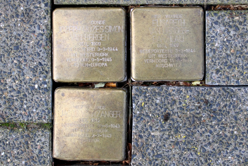 Stolpersteine kop van de Leeuwenstraat (voormalig Achterom 4)